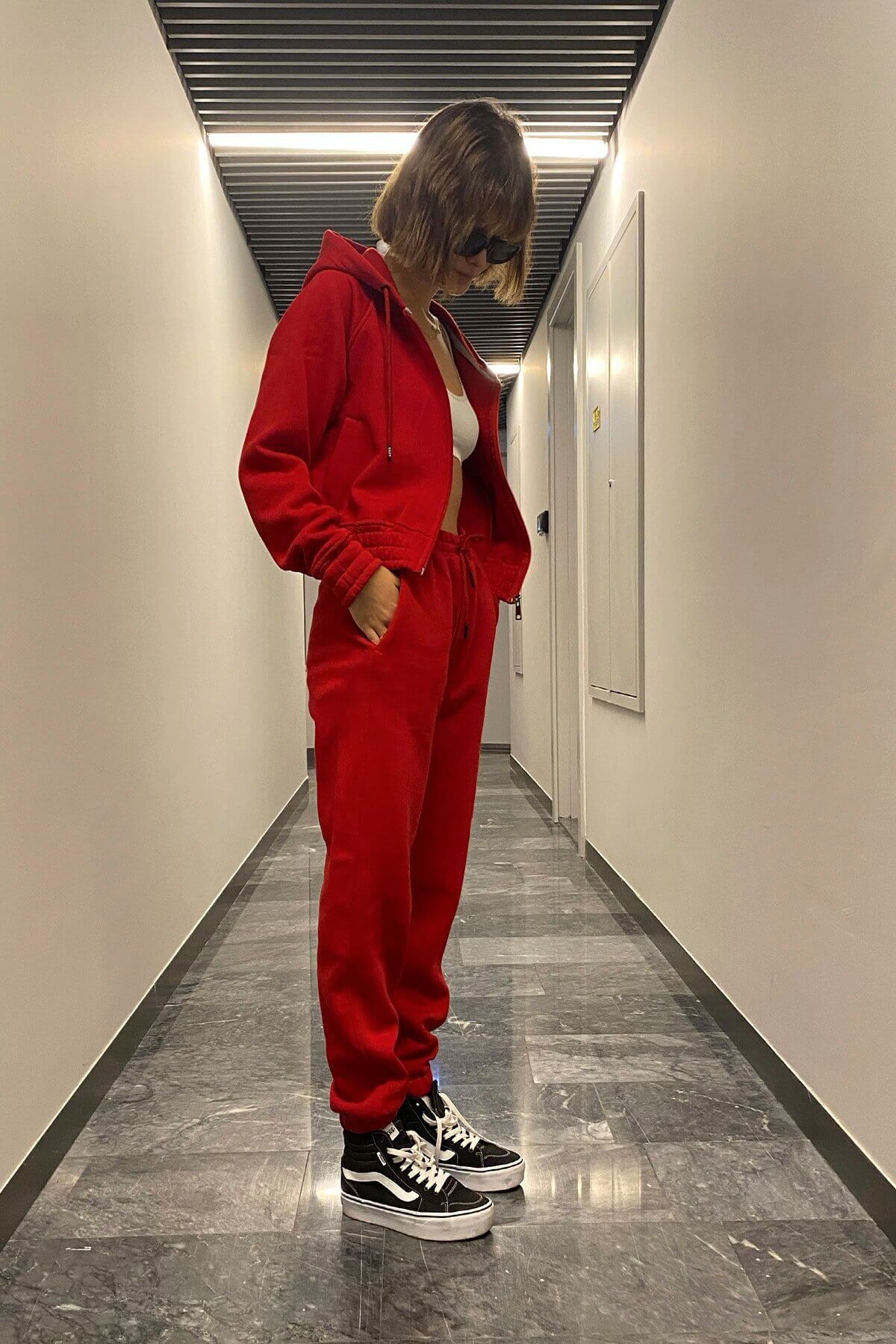 Kadın Basic Kırmızı Lastikli Premium Kışlık Eşofman Takımı